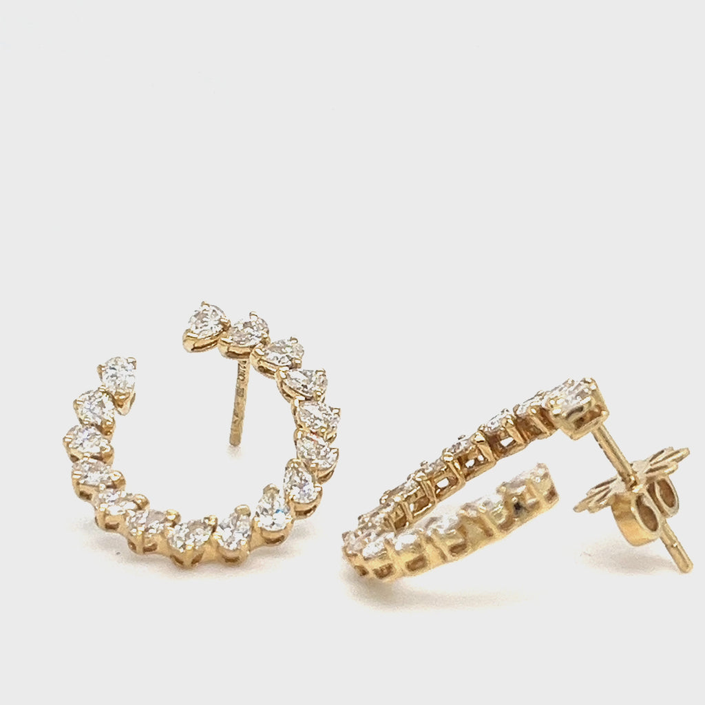 18k gold open circle earrings feature 32 natural white pear shaped diamonds, creating a stunning and elegant look. The unique design accentuates the beauty of each diamond, making them a perfect accessory for any occasion. Elevate your style with these exquisite earrings.